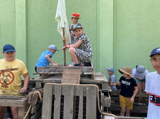 Aby ste sa cítili, ako skutoční piráti, nemusíte sa vylodiť. Stačí, ak sa spojíte, chytíte do ruky pílu a kladivo a potom k sebe pripevníte niekoľko dosiek a paliet. Odvážni siedmaci túto skúšku prekonali, a tak sa dobrodružstvo môže začať!